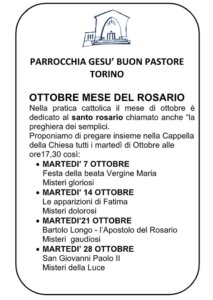 Dal 1 settembre riprendone le celebrazioni secondo orario ordinario. Santa Messa Festive: Sabato h 17,30 Domenica ore 9,30 e 11,15. In settimana Mercoledì ore 18 S. MessaGiovedì ore 18: Liturgia della Parola presieduta da Ministro Straordinario della Comunione. Venerdì ore 18: Liturgia della Parola presieduta da un Diacono Ufficio ParrocchialeDal Lunedì al Venerdì ore 16-18.